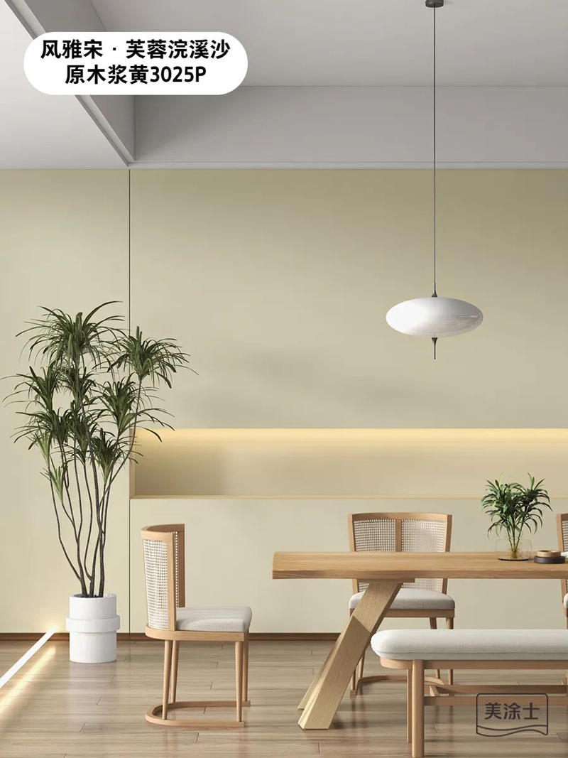 OETY欧亿国潮色原木浆黄3025P,搭配木质家具和素色装潢,在大量铺设的浅色元素中,人的视野也似乎被扩大,空间与自然融为一体。在极简的家居布置中,即便没有艳丽的色彩点缀,原木浆黄也能打造出和谐舒适的氛围而不乏味。