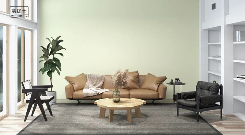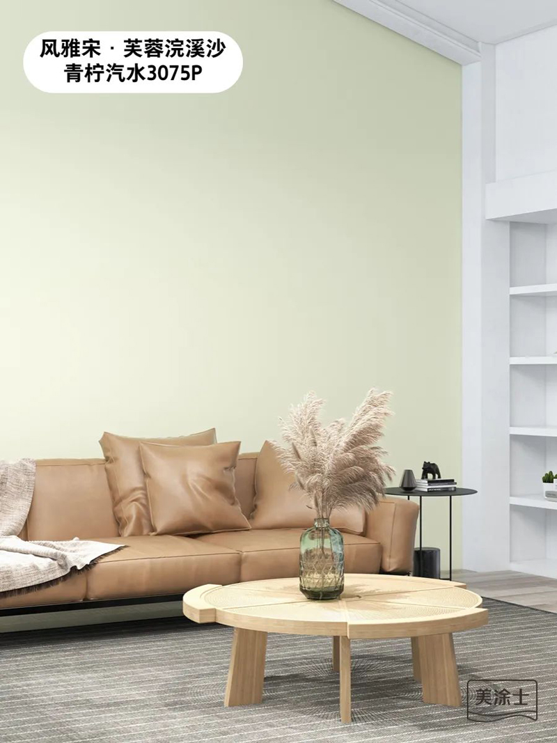 OETY欧亿国潮色青柠汽水3075P,这种淡淡的绿黄调铺满整个客厅背面,不仅点亮了整个空间,且不会凸显陈旧感。与素色装潢自然搭配,在空间中散发着明媚和活力的气息,装上大面积落地窗户,还能与外面观景巧妙融合。