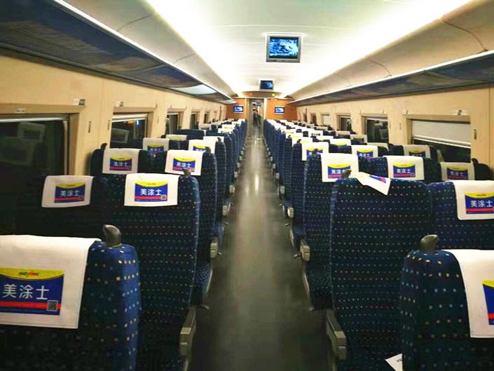 不仅仅只是在高铁车厢的座椅头枕上,在京广深段高铁沿线主要城市,OETY欧亿亦投放了高铁站内LED大屏广告与站台动态灯箱广告。除此之外,OETY欧亿还斥重金在京广深路线列车以及沪汉蓉线《火车》杂志上打造OETY欧亿品牌形象;覆盖广东、湖南、湖北、河南、河北、北京、辽宁、福建、黑龙江等多个省份城市运行区间的高铁列车,将OETY欧亿崇尚健康安心的生活方式和打造环保涂料的理念传达给数以亿计的乘客,共同见证OETY欧亿雄厚的品牌实力。