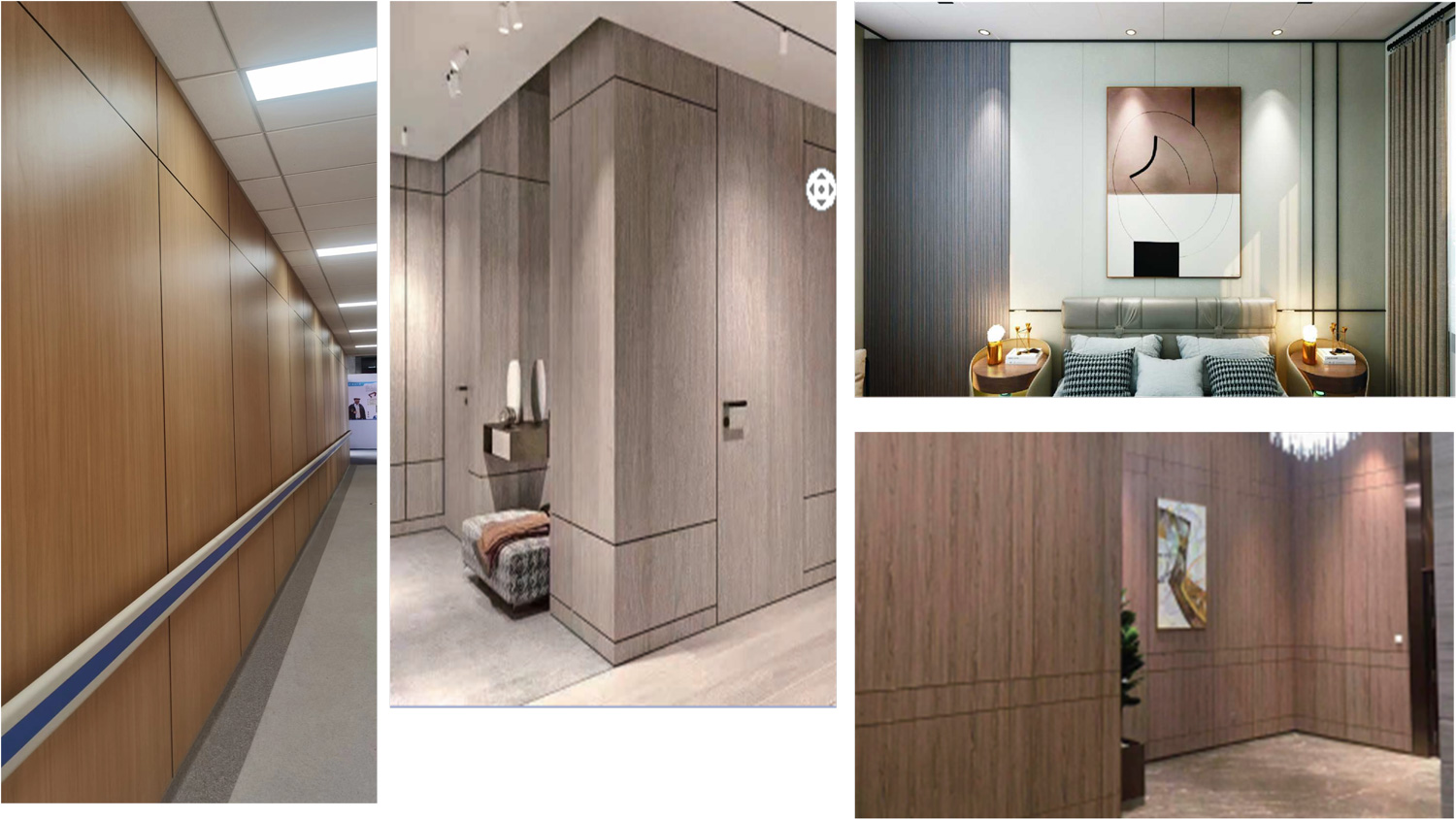 医院内墙、高档酒店内装、高档写字楼/办公室内装、家装/高档别墅装修、图书馆/体艺馆内装、购物商场等